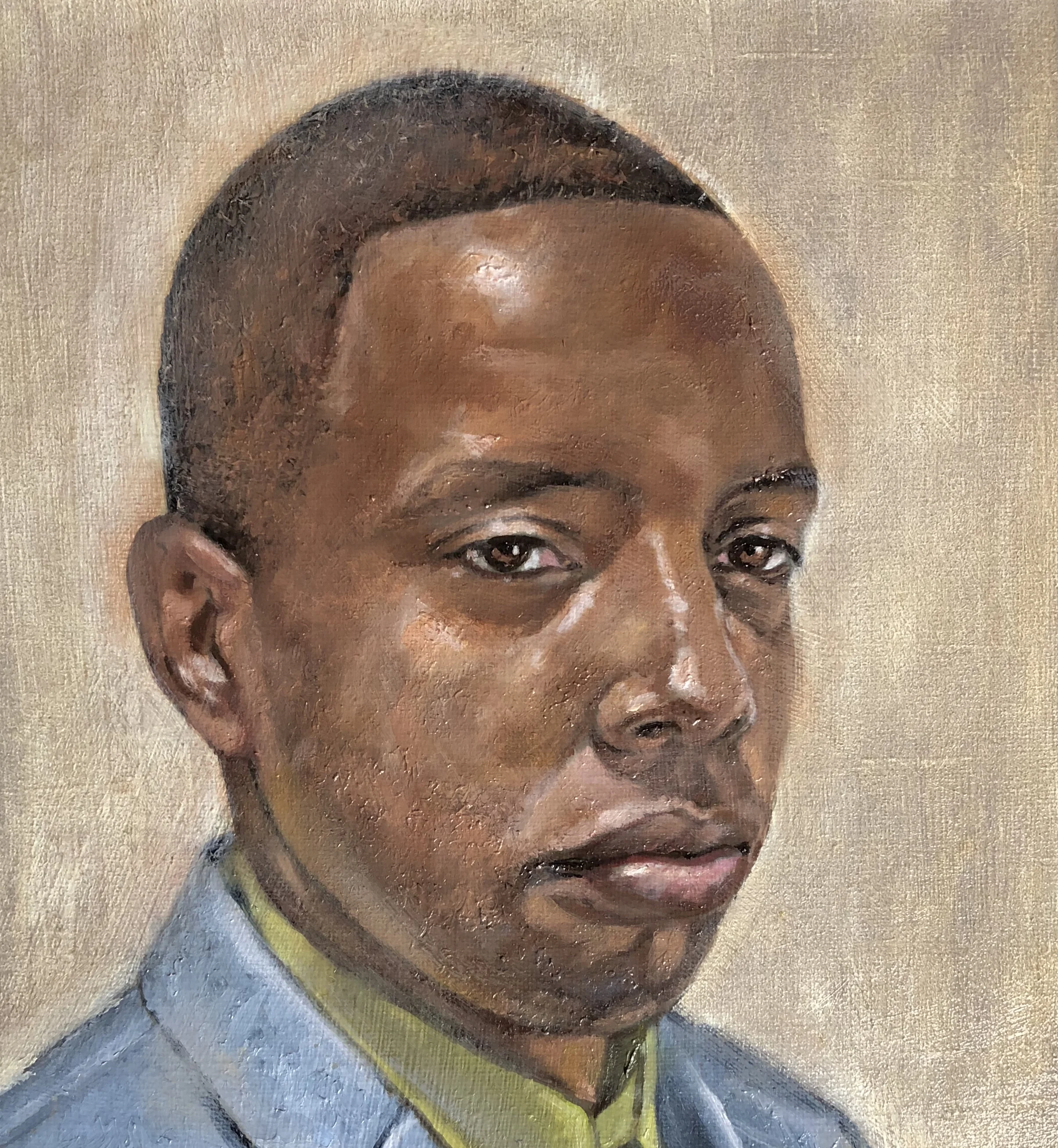 “The Economist” Oil on Panel, 24 x 24 inches, Private Collection